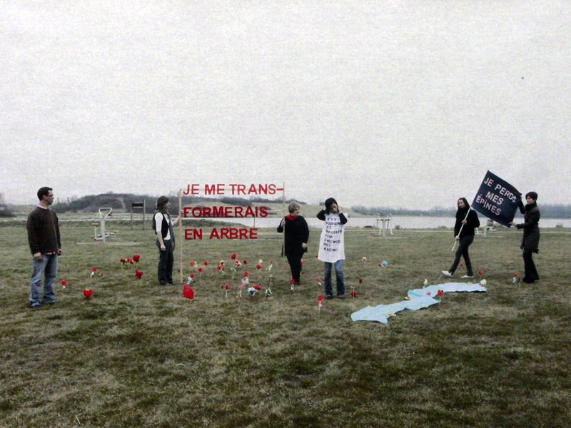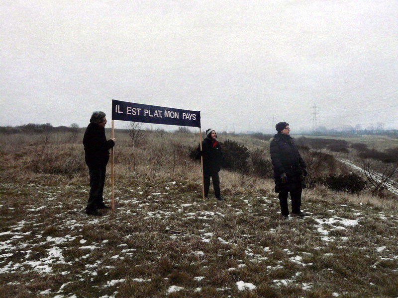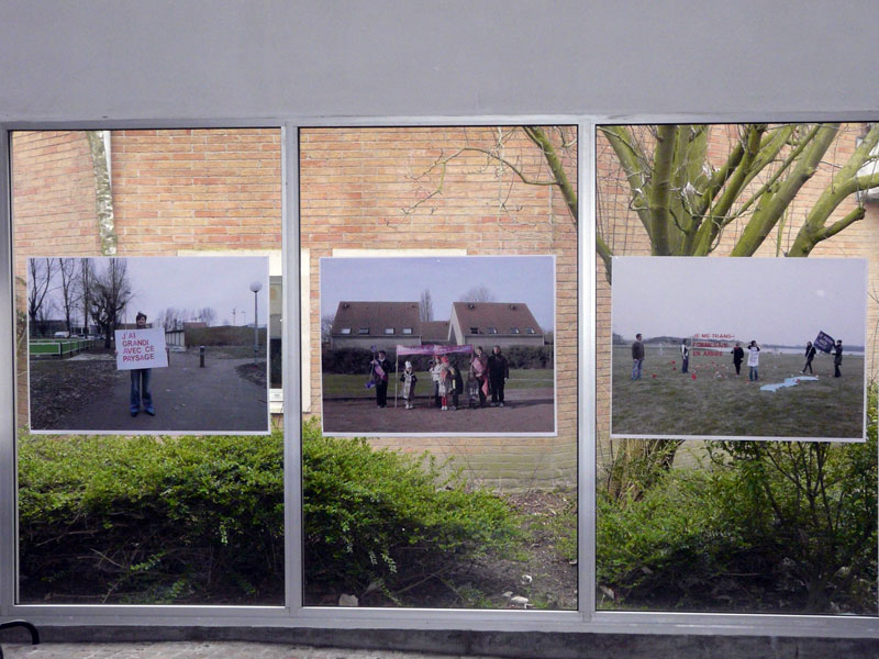Cécile Belmont a mis en place à Grande-Synthe des "letter performance" avec les habitants. Une "letter performance" est une action brève et inattendue dans l'espace public. Un groupe de personnes se rassemble et forme des phrases qui les identifient.