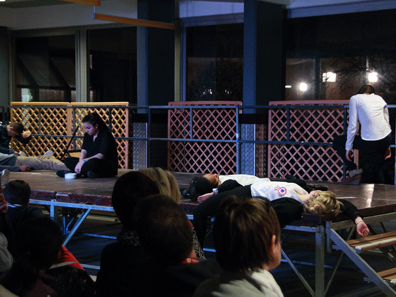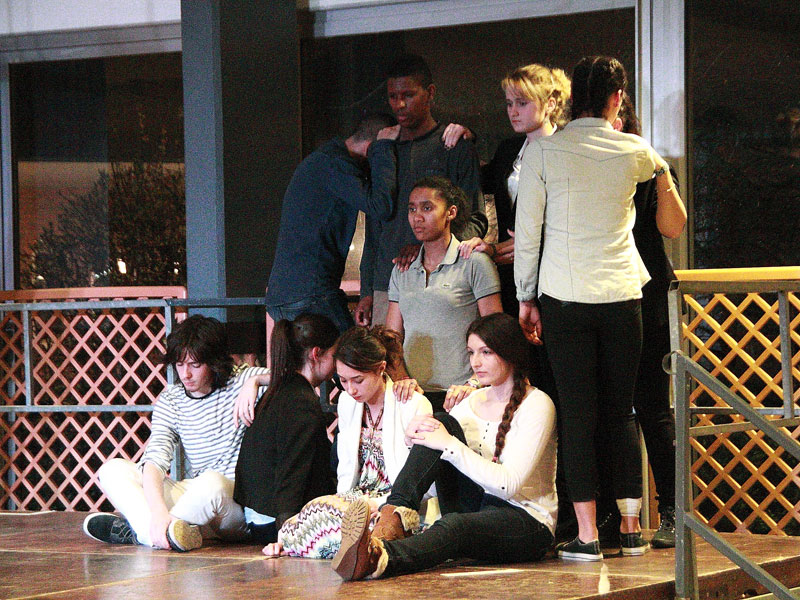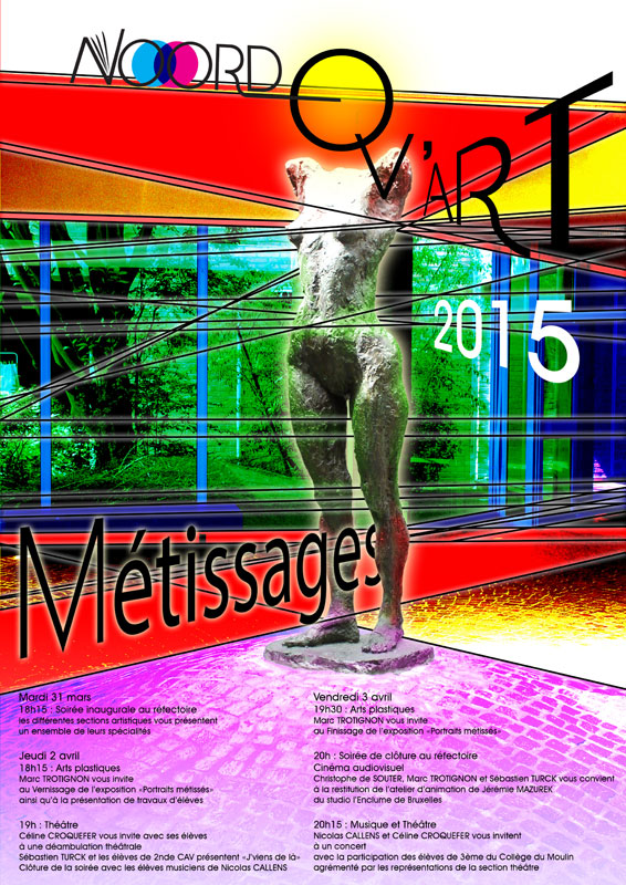 Mis en scène en partenariat avec Brigitte Mounier, metteure en scène de La Cie des Mers du Nord, les élèves de terminale de l'option facultative théâtre proposaient différentes saynettes où le métissage était prétexte à aborder la dure réalité des relations humaines ; à travers notamment les textes de Sartre, "Huis clos", ceux de Jouanneau, "Mamie Ouâte en Papouasie", des extraits des "Sacrifiées" de Laurent Gaudé, ou encore de Groupov, "Rwanda 94".