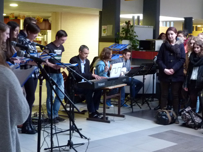 En guise de final, M. Callens nous donnait, dans la salle de musique, à travers quelques chansons un avant-goût du concert du lendemain.