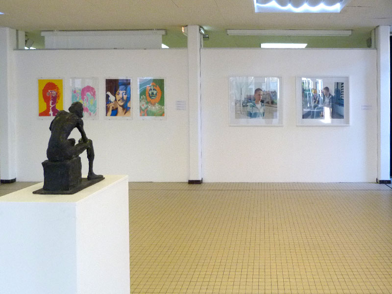 Le choix de ces différentes oeuvres, réalisé avec l'aide de Cathy Christiaen du Département Art et Médiation, proposait plusieurs clés de lecture de la notion de métissage. Les posters sérigraphiés des Beatles à partir des photos de Richard Avedon en 1967 faisaient la part belle au psychédélisme et aux influences de l'album "Sgt Pepper's Lonely Hearts Club Band". Les photographies de Marie-Noëlle Boutin, quant à elles, présentaient des portraits d'adolescents dans des compositions qui évoquaient plus la peinture que les clichés des reportages. Cependant, c'est la peinture quasi-abstraite de Ladislas Kijno : "Hommage à Angela Davis", qui par sa force allusive, formait un métissage en forme de contrepoint avec les autres oeuvres plus figuratives. Enfin le "Musicien Pop", tournant le dos au "Torse de Femme" du même Charles Gadenne, nous rappelait que nos rapports humains, y compris au sein de notre lycée étaient faits de liens métissés.