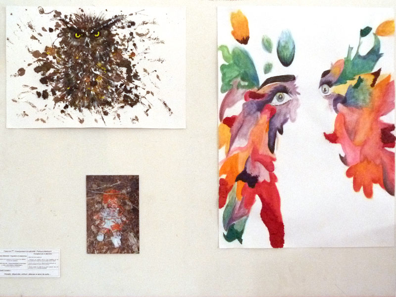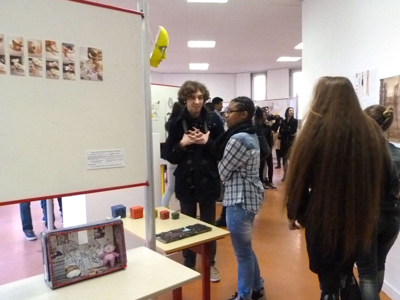 Comme les années précédentes, dans la salle polyvalente, les élèves des différents niveaux d'Arts plastiques (de la seconde à la terminale, tant en spécialité qu'en option facultative) présentaient aux visiteurs leurs réalisations dont ils avaient eux-même assuré l'accrochage.