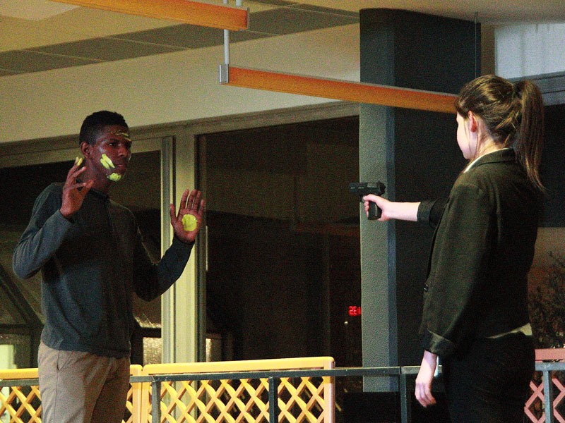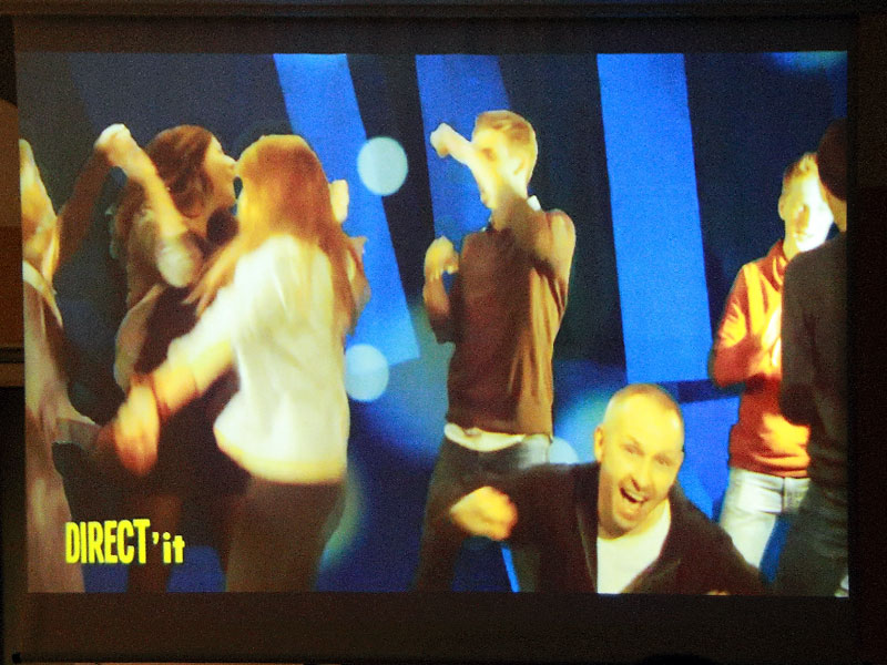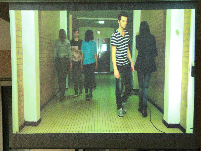 Par ailleurs les élèves de théâtre, devenus, un temps, quides des visiteurs, entraînaient le public de scènes en scènes, y compris vers des projections des films des élèves de CAV.