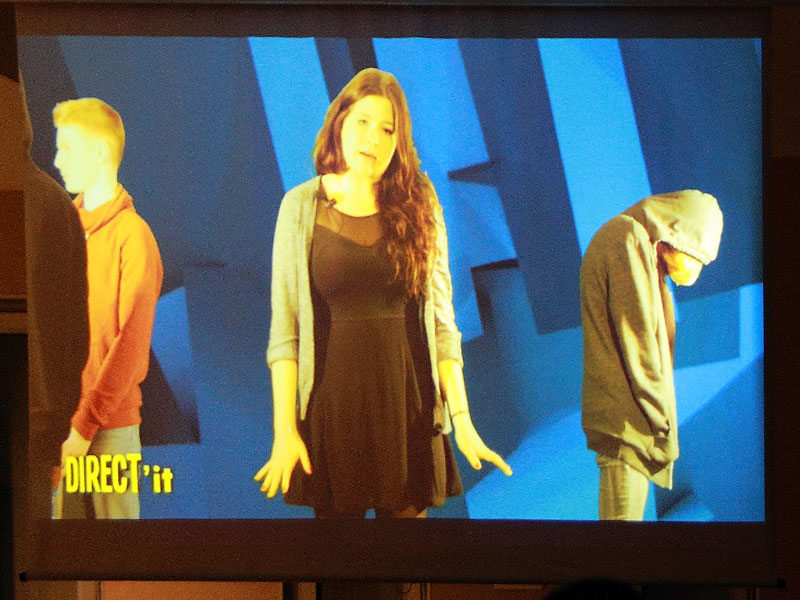 Melle Croquefer, professeur de théâtre proposait, elle aussi, plusieurs niveaux de lecture de la notion de "métissage". Tout d'abord parce que les différentes saynètes jouées, étaient issues de textes de collègiens de 3ème. Ces textes avaient été réécris par des élèves de 2nde dans le cadre d'une liaison collège / lycée avec plusieurs établissements.