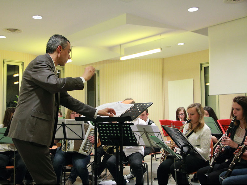 C'est accompagné par un groupe d'élèves de 3ème du collège du Moulin et de leur professeur que Nicolas Callens a dirigé les différents airs métissés qui ont agrémenté la soirée.