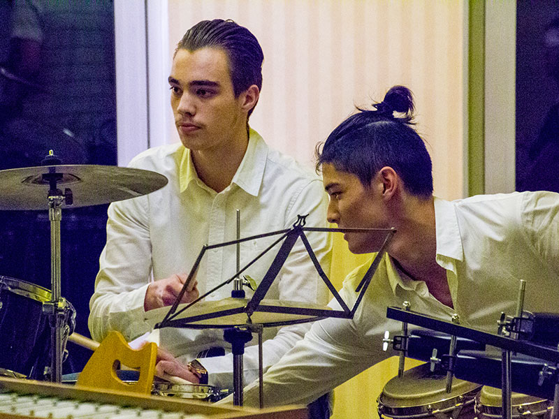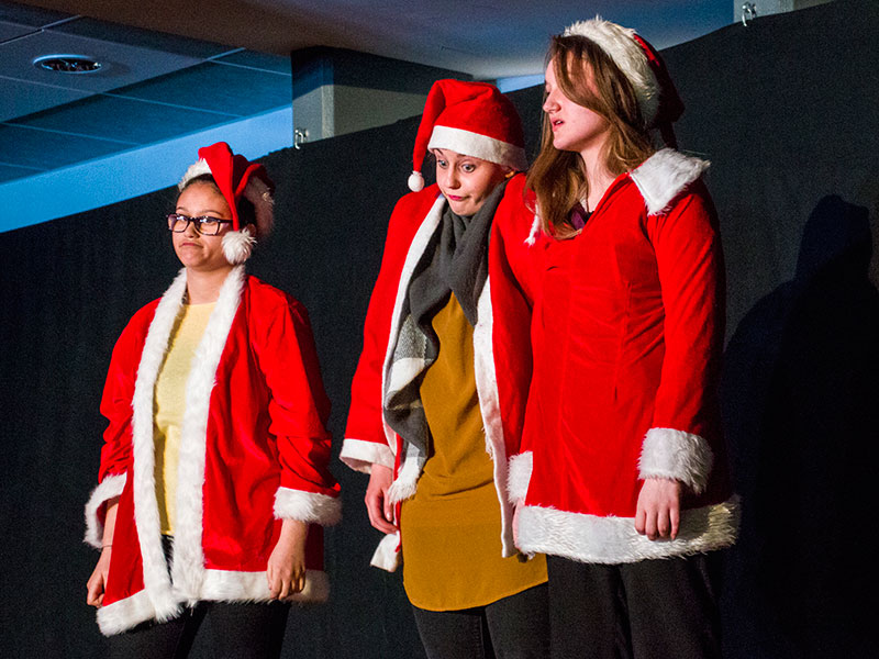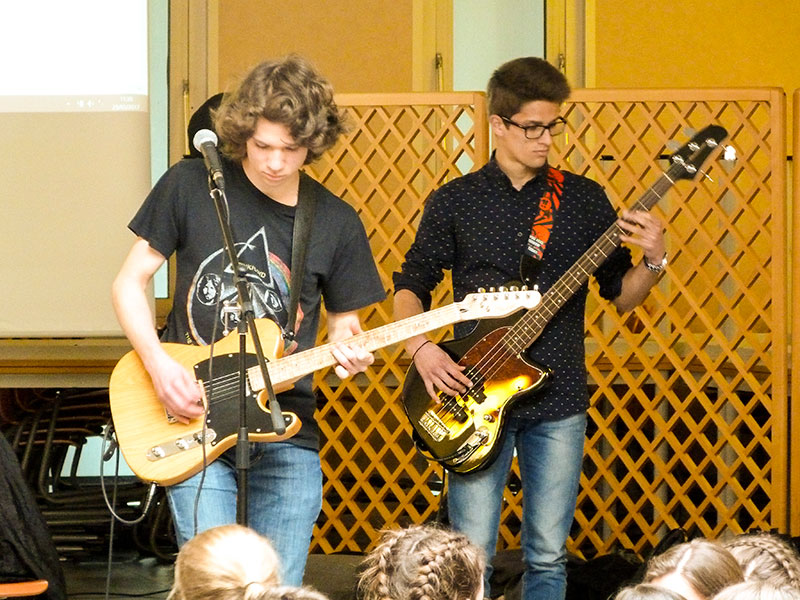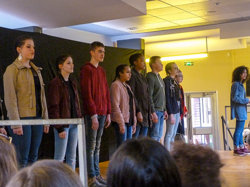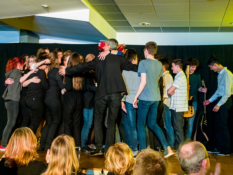 Le concert enchaînait les morceaux de musique, les chansons illustrant le thème de cette année et les tableaux joués par les élèves de l'option facultative théâtre.