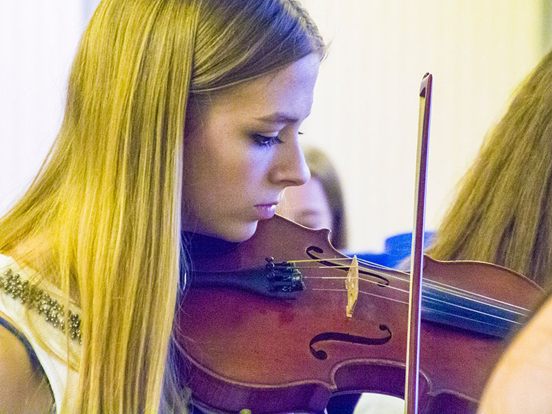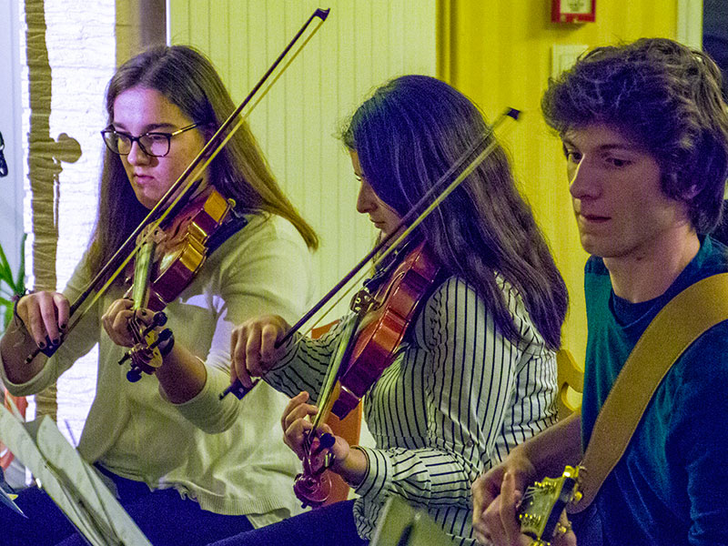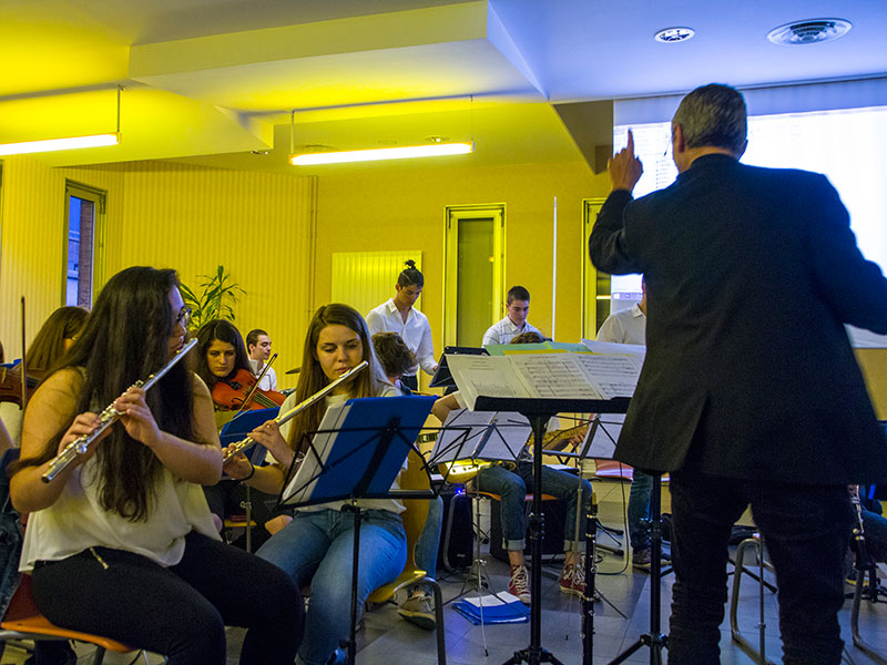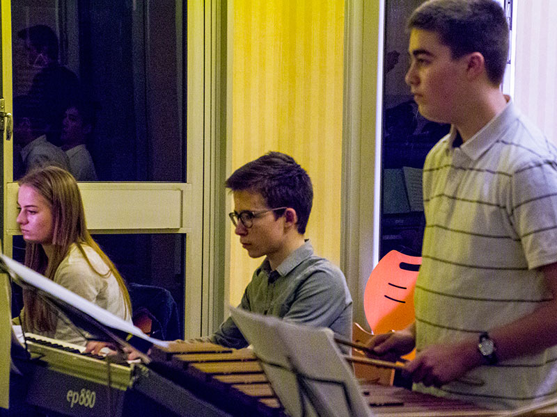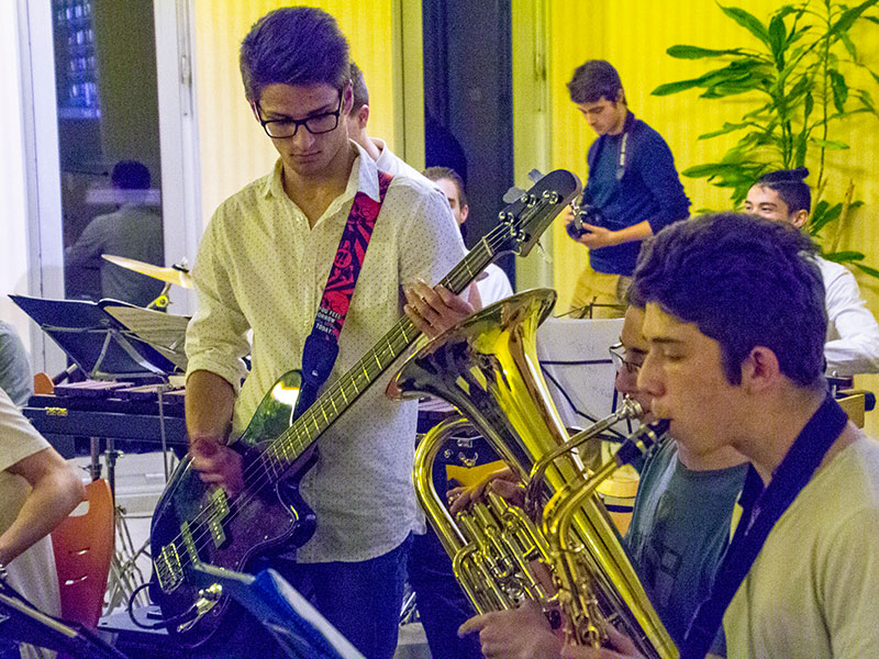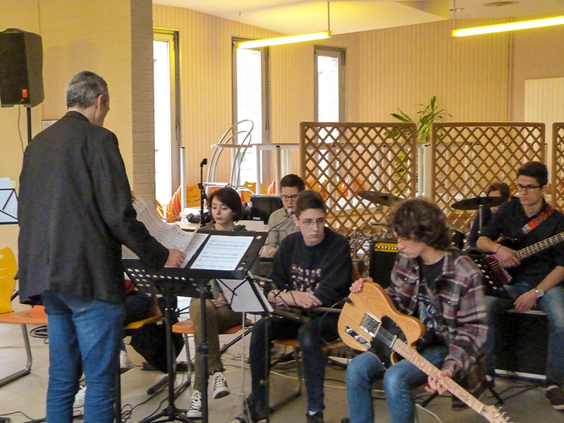 M. Callens et les élèves musiciens nous accueillaient, dans la rue intérieure du lycée, à travers quelques morceaux choisis.