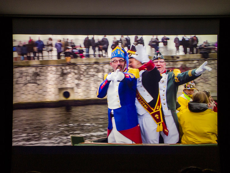 Comme l'an passé, nous avons relevé le défi de concentrer sur une heure, la présentation dans la salle du réfectoire, des bandes annonces et des différentes interventions de la seconde partie de la veille pour le public qui n'avait pu rester en soirée.