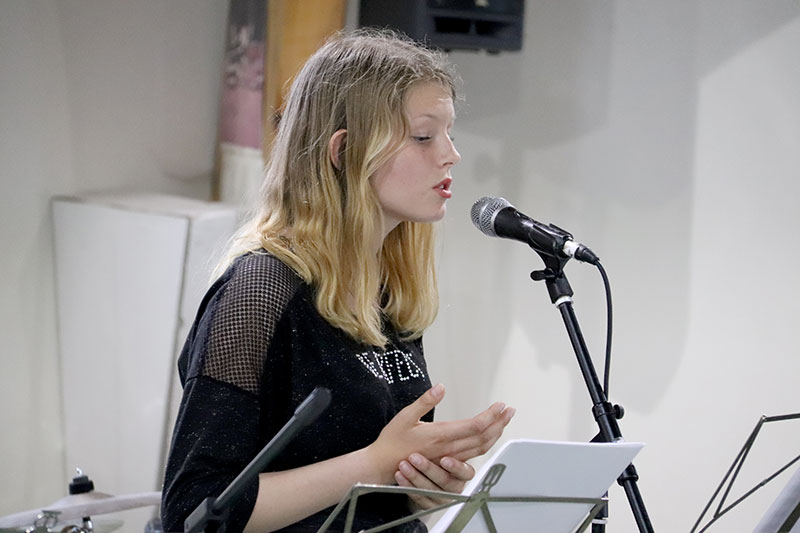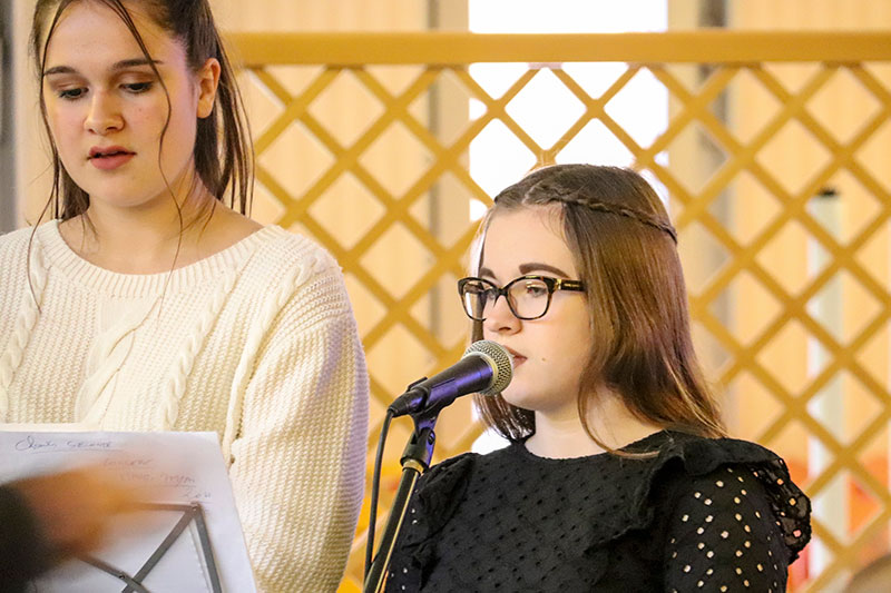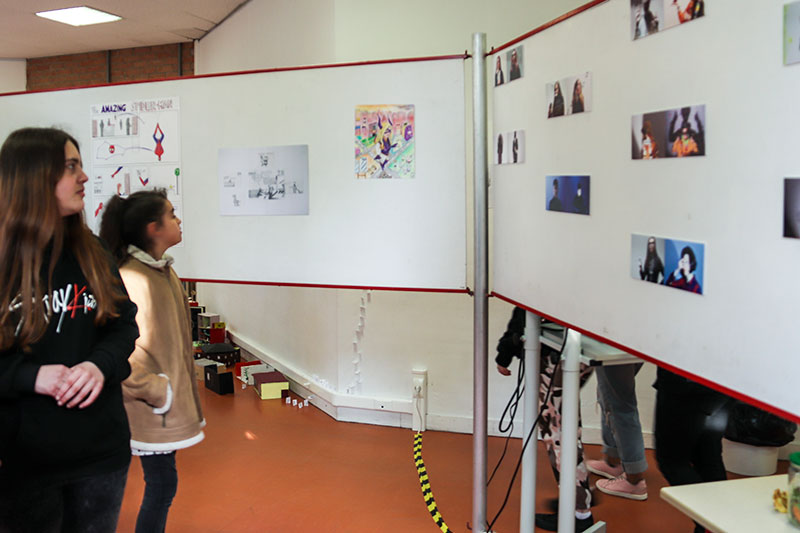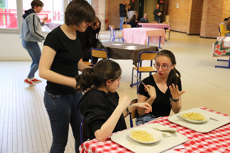 Après avoir découvert la salle d'exposition des travaux d'Arts plastiques, le public s'est dirigé vers le réfectoire pour la présentation de l'enseignement d'exploration Art du spectacle, du CAV, de la Musique et du Théâtre.