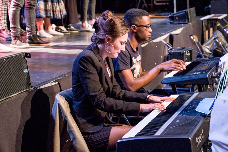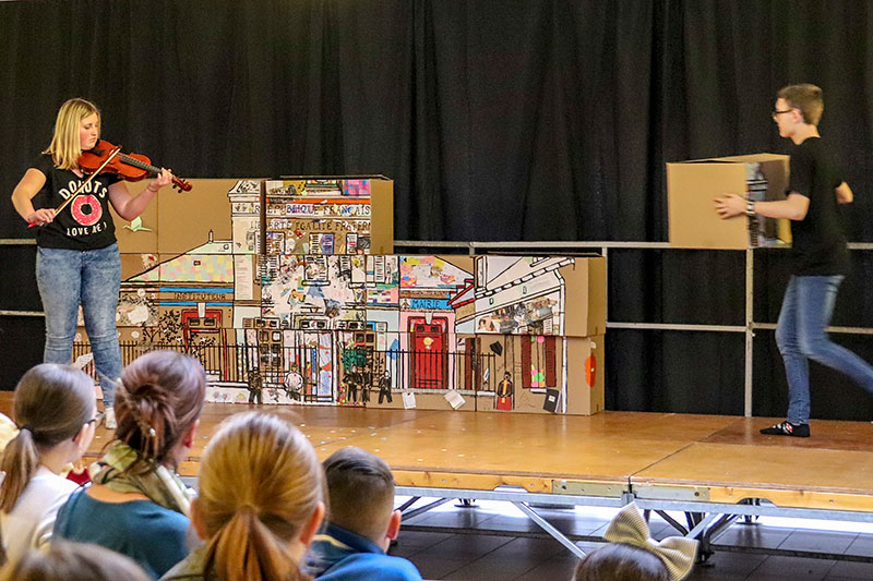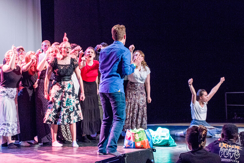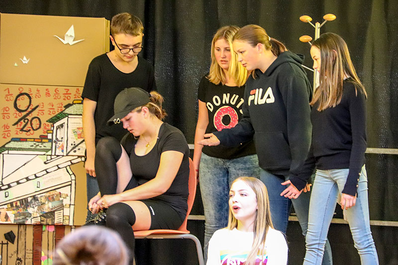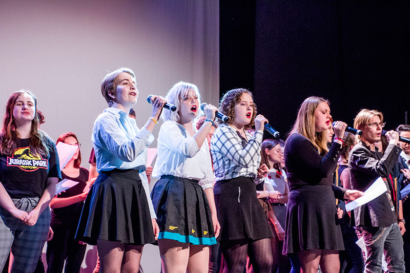Le spectacle enchaînait les films de CAV, les chansons illustrant le thème de cette année et les tableaux joués par les élèves de l'option facultative théâtre.