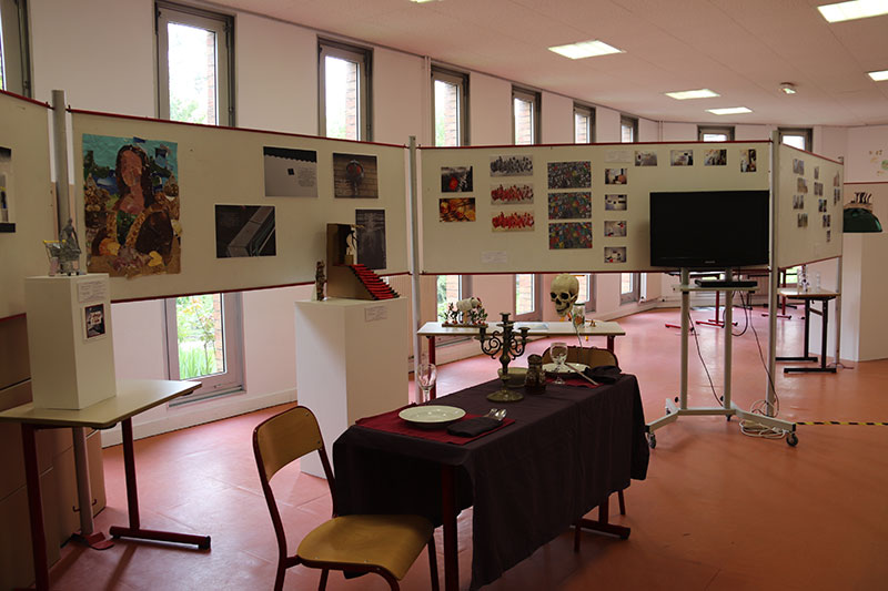 Cette année encore, dans la salle polyvalente, les élèves des différents niveaux d'Arts plastiques (de la seconde à la terminale, tant en spécialité qu'en option facultative) présentaient aux visiteurs leurs réalisations dont ils avaient eux-même assuré l'accrochage.