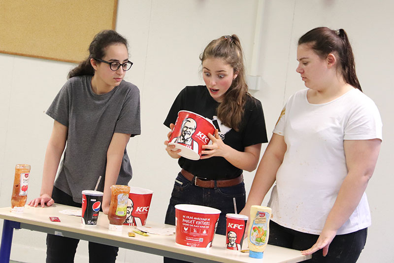Mis en scène en partenariat avec Brigitte Mounier, metteure en scène de La Cie des Mers du Nord, les élèves de terminale de l'option facultative théâtre proposaient des extraits de différents textes ambitieux sur le thème de la consommation, et notamment parmi ceux-ci, "Question de volonté" de Gérard Levoyer, "Modeste proposition pour empêcher les enfants pauvres d'être à la charge..." de Jonathan Swift, "Café équitable et décroissance au beurre" de Christophe Moyer.