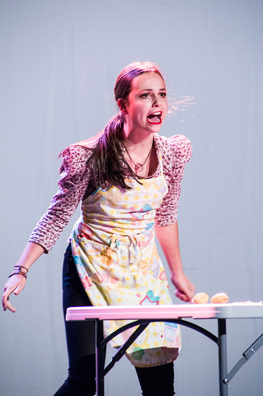 Melle Croquefer, professeur de théâtre proposait la découverte d'extraits de textes de Rodrigo Garcia, tels que "Notes de cuisine", "Fallait rester chez vous, têtes de noeud", "Jardinage humain", "Agamemnon, A mon retour du supermarché, j'ai flanqué une réclée à mon fils".