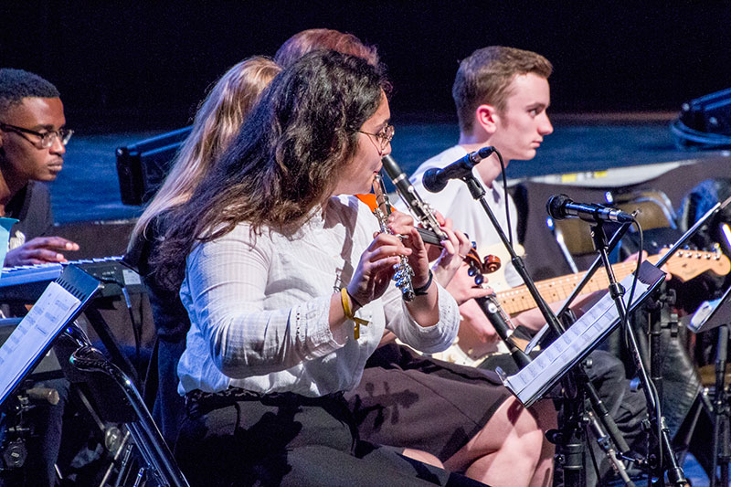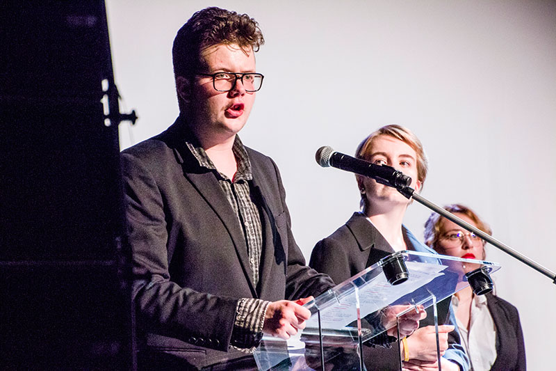Durant la soirée les interventions des différentes sections arts ont enchaîné courts-métrages du cinéma-audiovisuel, présentations des travaux d'arts plastiques sur écran et chansons de la section musique, scènes des élèves de l'option théatre.