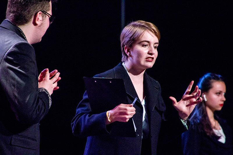 Ce dernier temps de la semaine dédié aux classes de Terminales a commencé par un mot d'introduction de M. Bernard, proviseur, le spectacle a enchaîné ses différents tableaux interrogeant la notion de consommation.