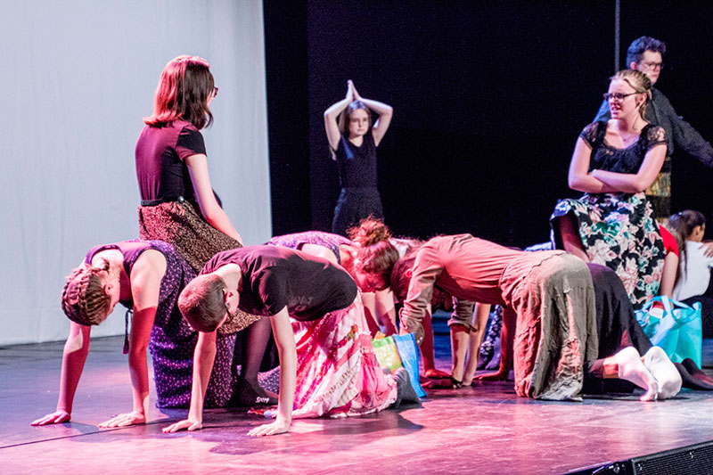 Le public était alors invité à se diriger vers différents espaces et salles où on lui proposait des saynètes de la section Théâtre.